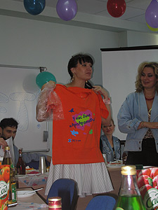 Конечно же, не обошлось и без подарков. Каждый участник праздника получил стильную оранжевую футболку с надписью "У нас была кАрпАратиФка". Без сомнения, такой подарок будет долго напоминать о яркой корпоративной вечеринке.