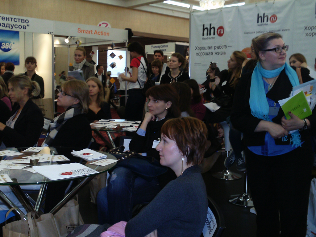 Во-первых, явным смещением интереса посетителей от больших пафосных стендов к компаниям, которые представляли активности в виде мастер-классов, круглых столов, презентаций. Именно экспозиции Head Hunter, Острова фрилансеров, компании Formatta собирали аудиторию с профессиональными интересами. Очереди на стенд за бесплатным кофе и толпа во время розыгрыша призов – на наш, взгляд, здорово, но не на специализированной выставке.
