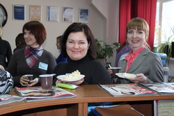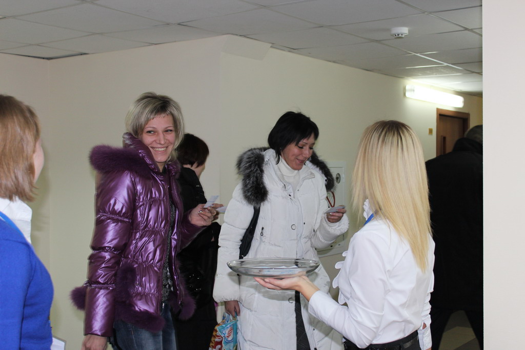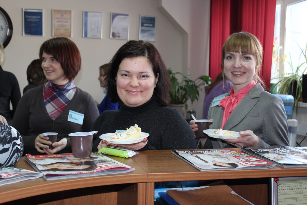 Уже при входе дамы получали весенний комплимент под музыку-настроение, которая, кстати, сопровождала все перерывы в занятиях. А на завершающей день кофе-паузе наших клиенток поздравили автор семинаров Дмитрий Русаков и заместитель директора Бизнес-школы по продажам Ирина Пучкова.