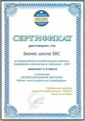 В 2014 году нашей вновь стала номинация «Профессиональное обучение: Рейтинг многопрофильных провайдеров». В этой категории с нами соперничали и оказались на втором и третьем месте, соответственно, такие компании, как «Moscow Business School» и «Русская школа управления».