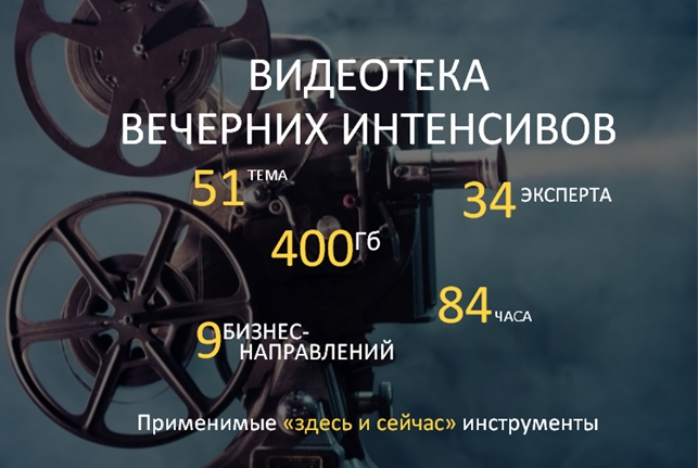 Но это еще не все. В эту же видеотеку мы добавили бонусные материалы – видеозаписи 35 вечерних мастер-классов от наших экспертов, собранные за последние 2 года. Итого вас ждут 84 часа видео по 51 бизнес-теме.