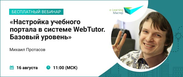 А весь спектр задач, решаемых во время запуска СДО WebTutor, станет подвластным вам после участия в онлайн-курсе Михаила Протасова . Эта уникальная программа стартует 6 сентября и открывает новый учебный год Центре . Узнать все подробности и стать участником можно