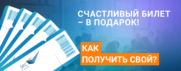 В честь нашего 19-летия мы дарим своим клиентам счастливые SRC-билеты! Каждый такой билет – возможность в первом полугодии 2019 года посетить любую 1/2/3-дневную программу бесплатно! Все, что для этого нужно, с 29 августа по 29 сентября оплатить участие в очных мероприятиях SRC, которые пройдут 1 сентября-31 декабря 2018 года.