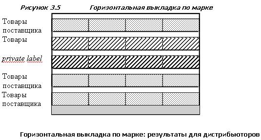 Поставщик, не лидирующий на рынке,ничем не жертвует. Более того, вертикальная выкладка по типу товара является предпочтительным способом выкладки для всех поставщиков, кроме лидера рынка.