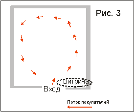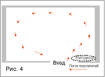 Эти шаги и позволят заинтересованному клиенту осмотреть всю экспозицию, а не быстро выйти из магазина.