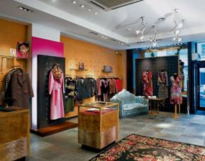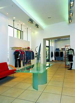 Б.Е.: За последнее время в больших городах России было создано немало бутиков, решенных в белых или светлых пастельных тонах, с использованием легких конструкций из металла, дерева и стекла. И именно такие интерьеры позволяют выделить продаваемые товары, а не сам интерьер: