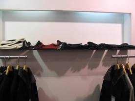 Самым распространенным способом развески товара, который экономит пространство небольшого магазина, является боковая развеска. Однако необходимо помнить, что боковая развеска не дает полного и качественного представления одежды. Поэтому необходимо часть ассортимента регулярно доставать из ряда боковой развески и вывешивать фронтально, создавая акценты на определенных изделиях. Пока эти изделия висят фронтально, внимание на них посетители будут обращать гораздо больше, чаще примерять. Больше примерок – больше покупок.