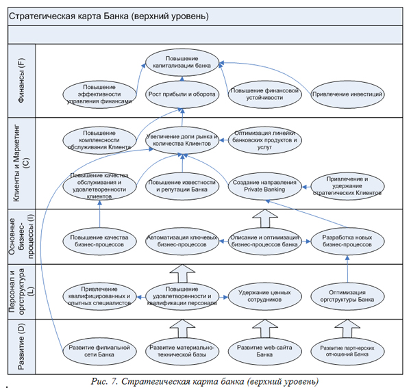 Всем вышеперечисленным требованиям удовлетворяет авторская разработка «Комплексная типовая бизнес-модель коммерческого банка» [1]. Она содержит успешные практики и решения, модели, документы, регламенты по основным областям менеджмента и бизнес-инжиниринга в банке: стратегия и BSC / KPI, бизнес-процессы, организационная структура и персонал, методология и банковские продукты, качество и ISO 9000, регламентация и документооборот, системная архитектура, многое другое. С технической стороны, комплексная типовая бизнес-модель коммерческого банка – это электронная база данных, разработанная в программных продуктах бизнес-моделирования (например, «Business Studio»).