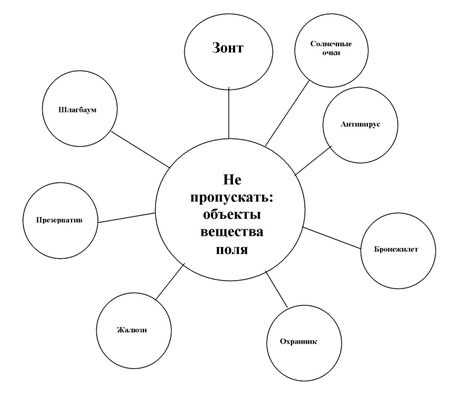 Затем в отдельных кругах, как показано на рисунке, расположим объекты, главная функция которых совпадает с функциями зонта (первоначального объекта).