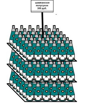 Для основных товаров, имеющих непосредственное отношение к новогоднему ассортименту, очень эффективна палетная выкладка. Это относится к алкогольным напиткам, в первую очередь к шампанскому, а также безалкогольным напиткам, конфетам, «сладким» подарочным наборам и пр.