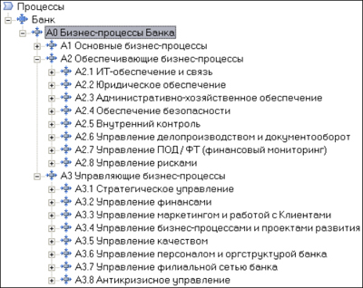 Рис.1. Дерево бизнес-процессов банка (верхний уровень)