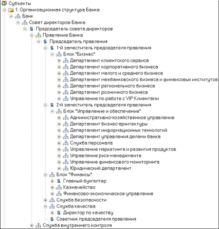 Рис.2. Модель организационной структуры банка (верхний уровень)