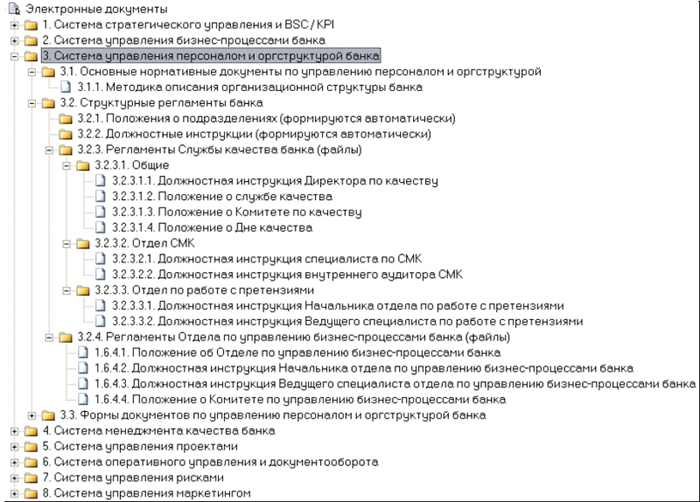 Рис.3. Модель библиотеки документов банка (фрагмент)
