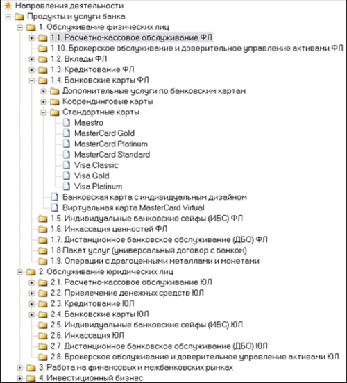Рис.4. Модель продуктов и услуг банка (верхний уровень)