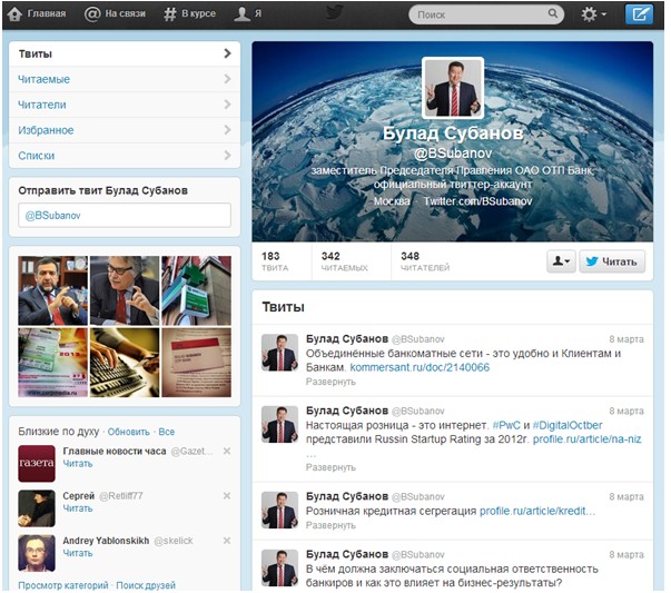 Дружба за взаимность. Практикуется на не взаимных площадках, где подписываясь на аккаунт человека, вы можете только надеяться, что он это заметит и в ответ подпишется на вас (twitter, livejournal и пр.) Аккаунты, получившие подписчиков взаимным фоловингом, распознать легко: количество подписчиков и тех, на кого они сами подписаны, приблизительно равно. Как правило, такой способ предполагает очень широкий таргетинг (Россия или точнее, русскоговорящие аккаунты), может автоматизироваться, но автоматизация легко приводит к бану аккаунта. Булад Субанов год назад имел около 40 000 подписчиков в twitter и сам был подписан на такое же количество аккаунтов