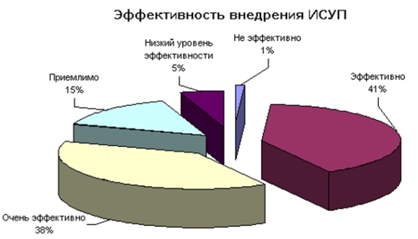 Крупномасштабных оценок эффективности использования ИСУП в российских компаниях не проводилось, так как число компаний, эффективно использующих подобные полнофункциональные системы не много. В США и европейских странах проводятся исследования подобного уровня.