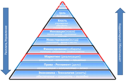 Согласны ли Вы с утверждением, что процессом управляет тот, кто имеет ОБЯЗАТЕЛЬСТВО, а тот кто имеет ПРАВО – только мотивирует? Если оно близко Вам, предлагаю рассмотреть схему, содержащую 9 уровней бизнеса и конфликт подцелей.
