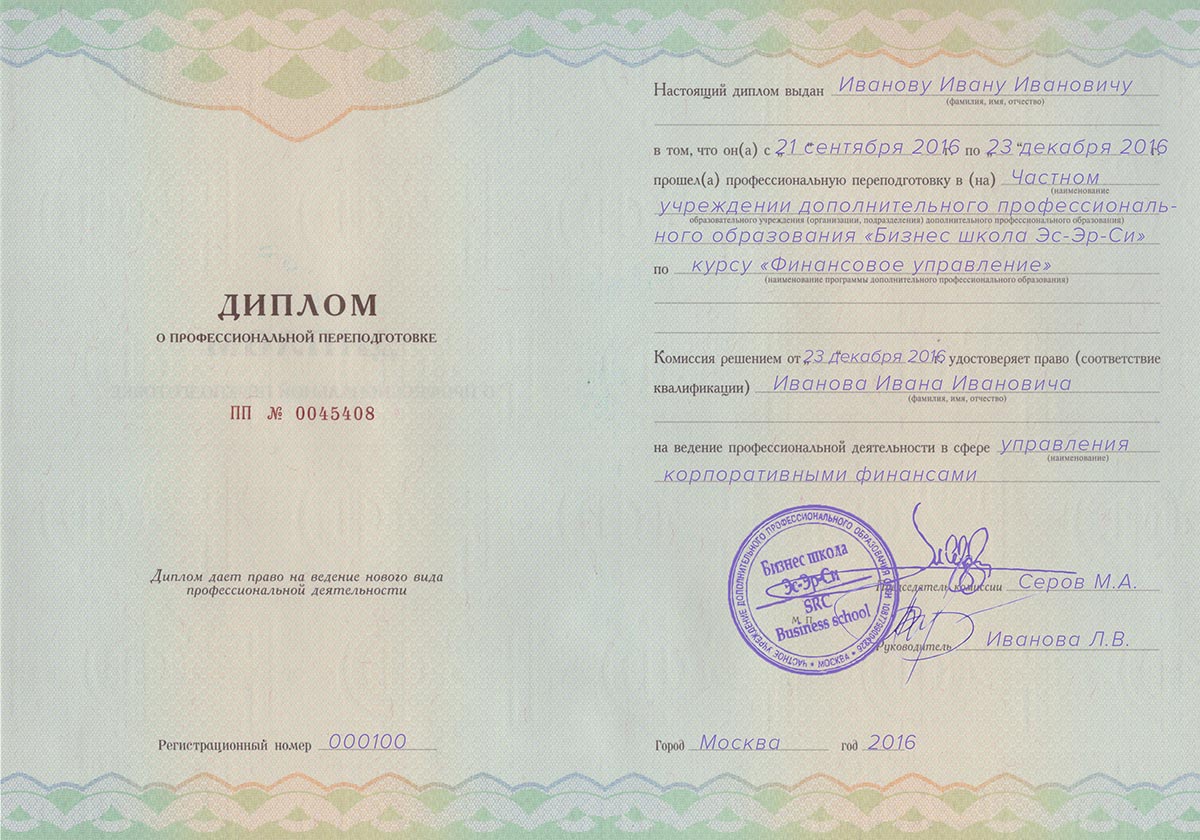 По окончании обучения выдается ДИПЛОМ о профессиональной переподготовке.