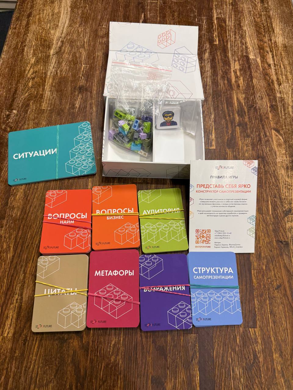 За 4 раунда вы соберёте «Лего» самопрезентации под разные аудитории и ситуации: выстроите структуру, ответите на вопросы, среагируете на возражение и даже расскажете о себе через метафору. Каждая подача — 1 минута, потом быстрая обратная связь от всех участников и игровая «валюта» — кубики лего.