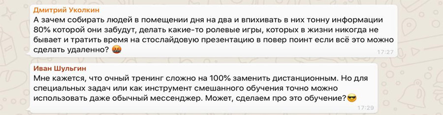 | работу в секретном WhatsApp-чате с дополнительными материалами, заданиями, обратной связью и общением с коллегами | + |
